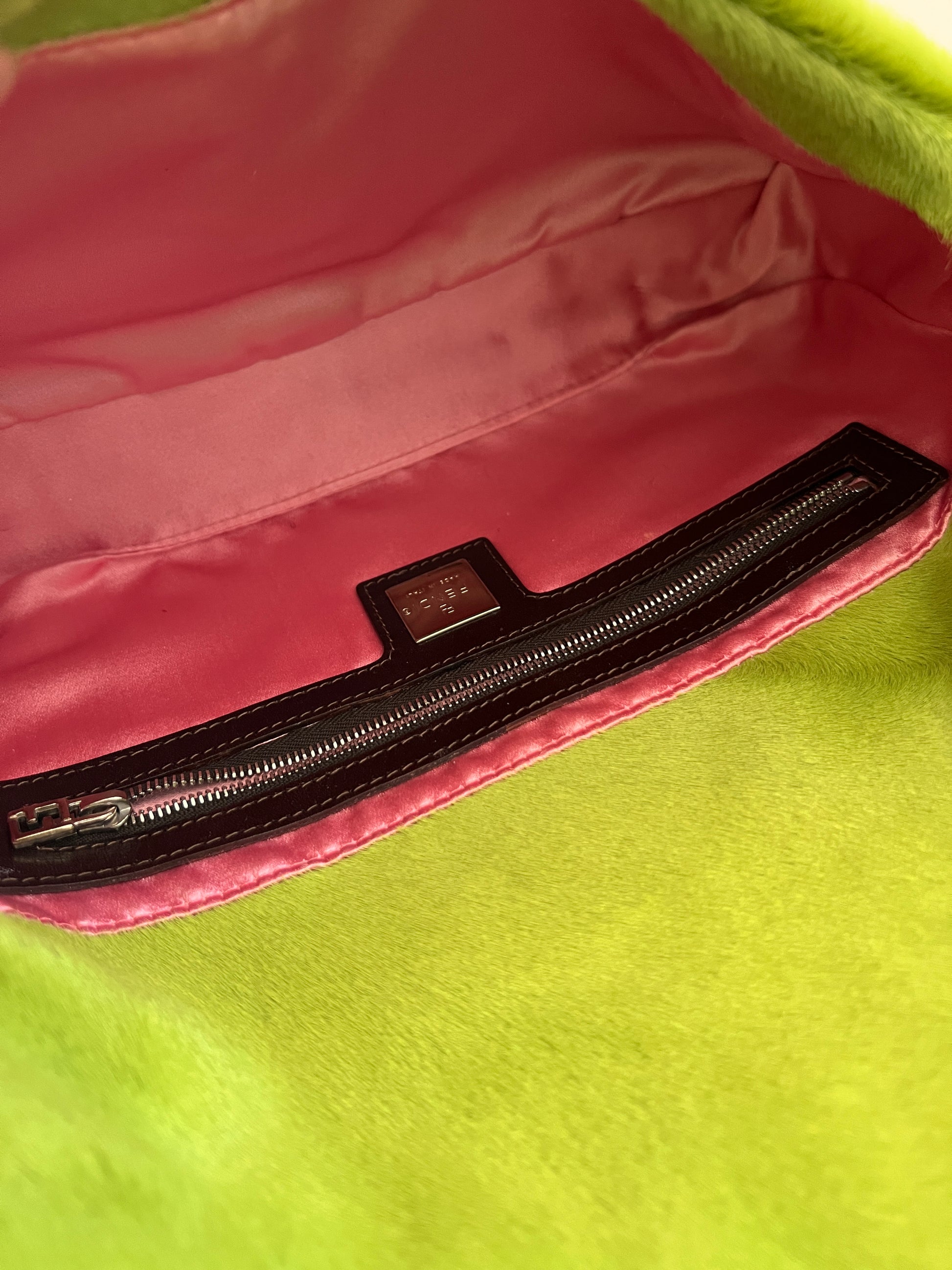 Fendi Green Pony Hair Cow Printed Baguette
