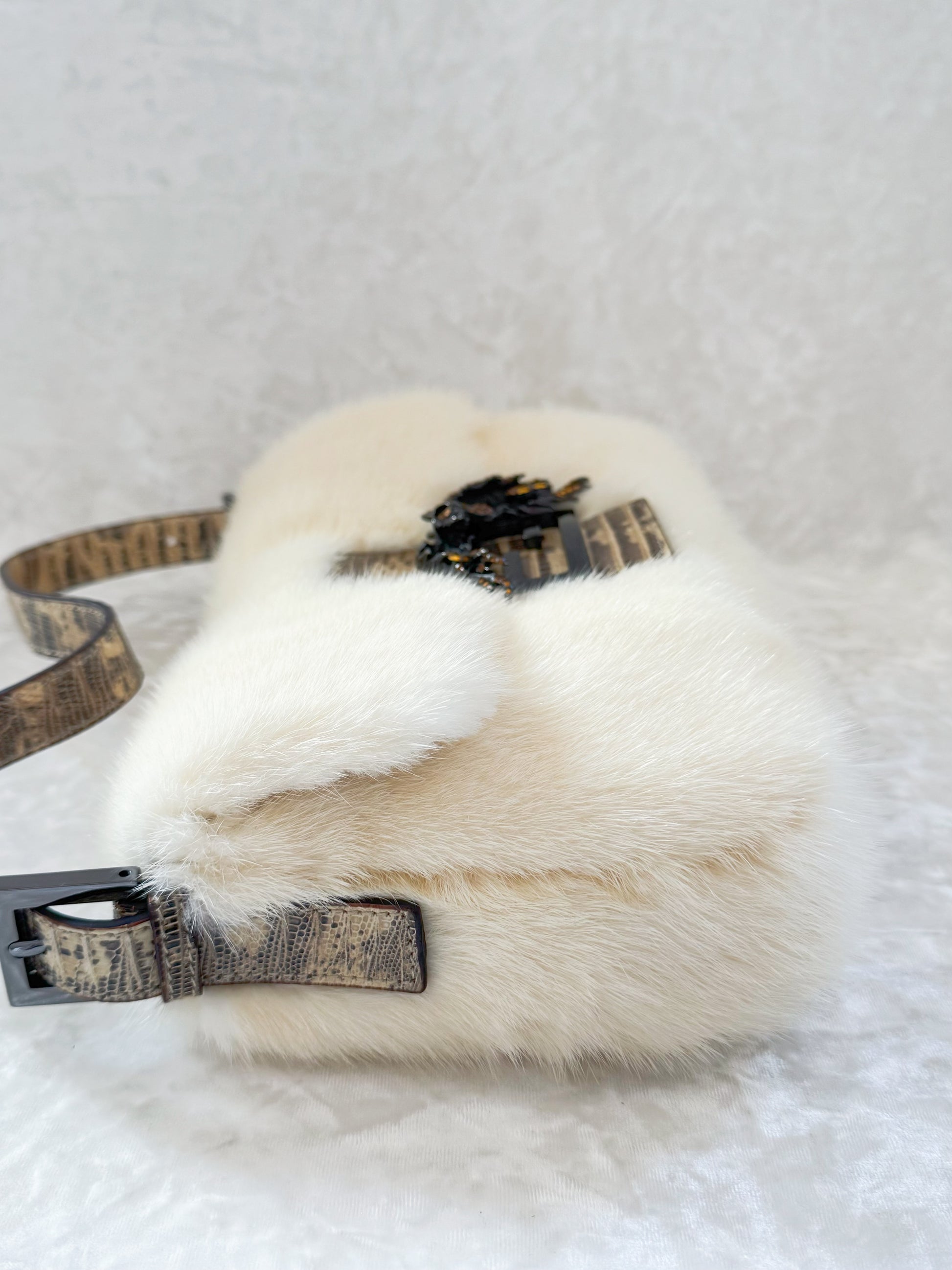 Fendi White Mink Baguette