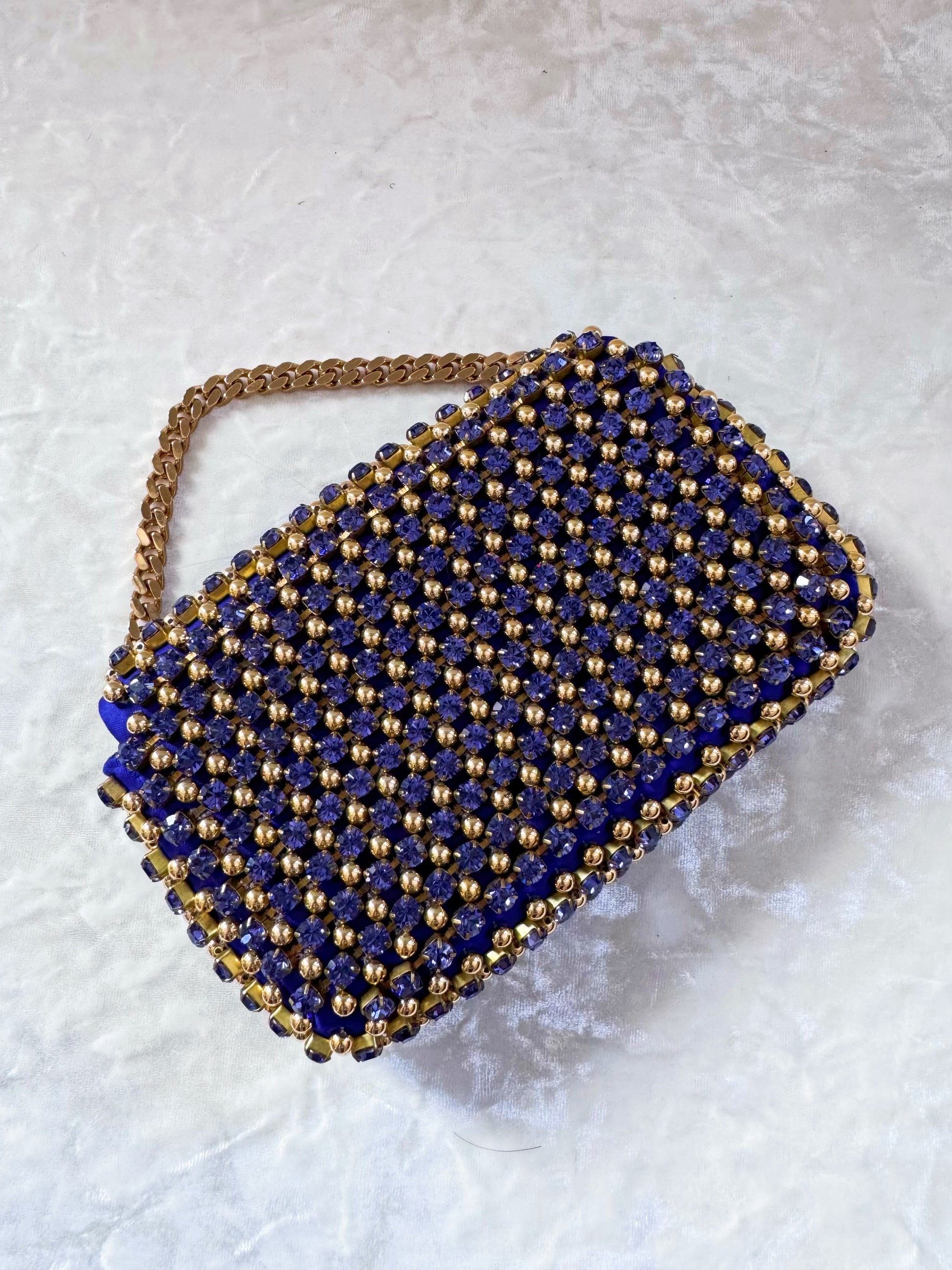 Fendi Purple Rhinestone Gold Beaded Mini Baguette