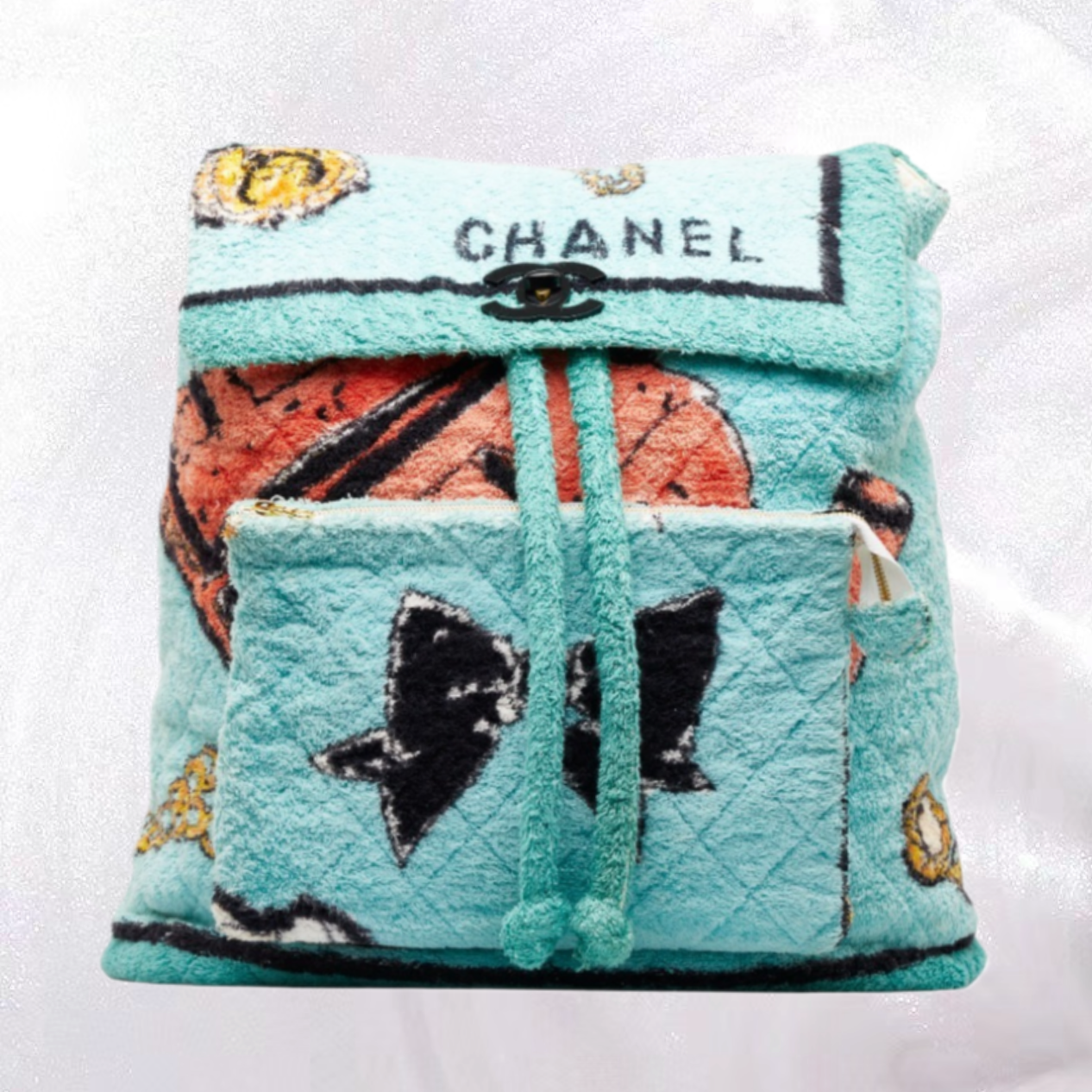 Vintage Chanel 1994 Blue Printed Towel Backpack