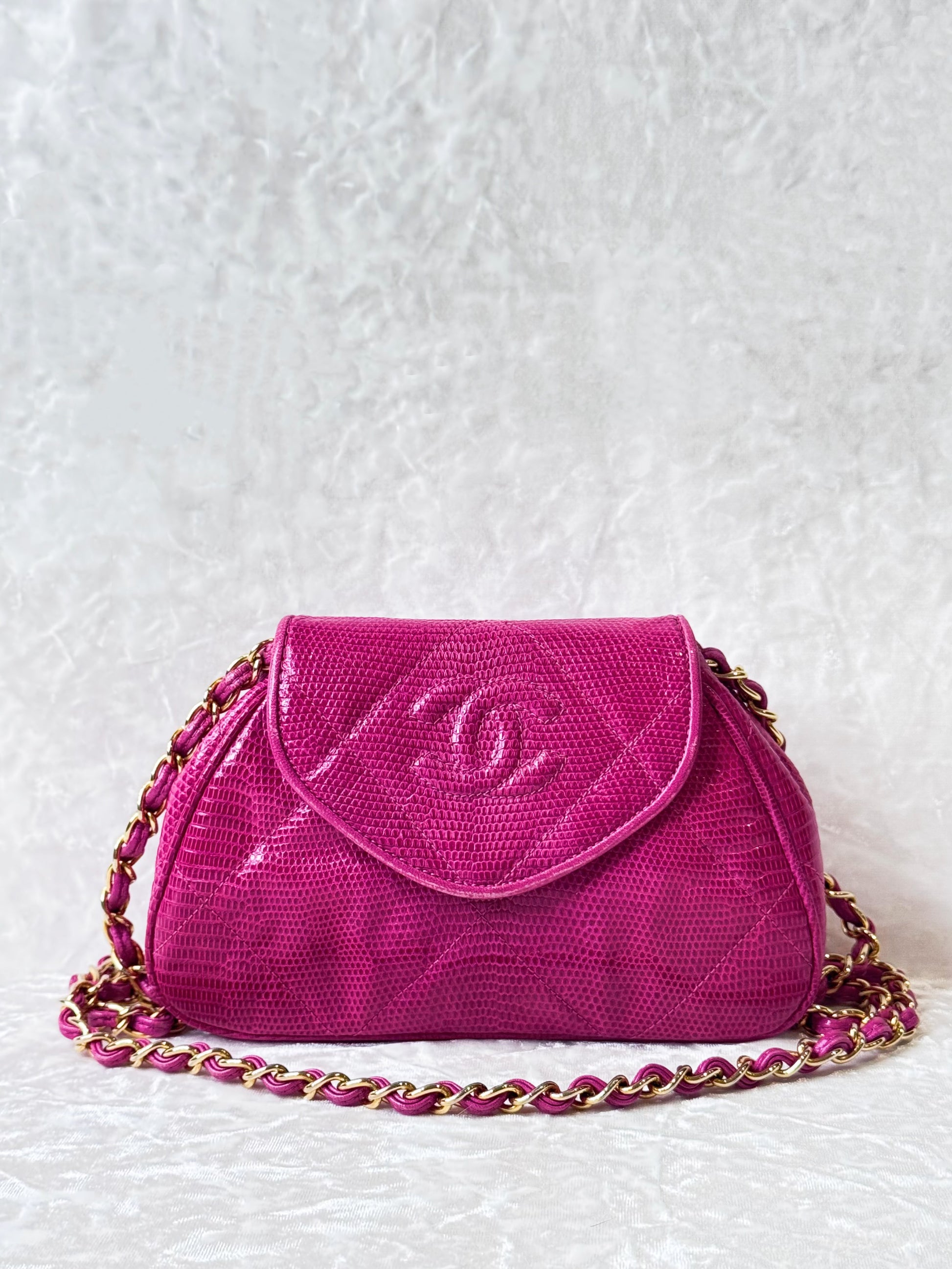 Vintage Chanel Hot Pink Lizard Mini Shoulder Flap